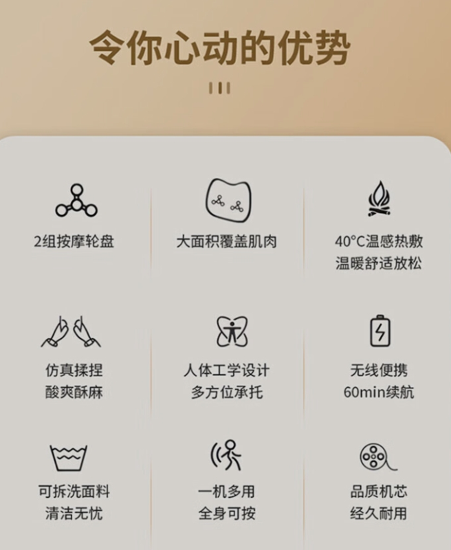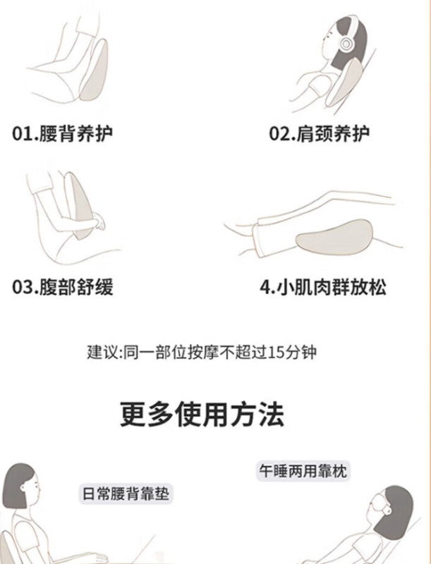 正逆向雙模式揉捏按摩,仿真人手法更舒適,細(xì)選機(jī)芯,靜音設(shè)計,3D熱敷大面積覆蓋,給你SPA般的熱敷體驗,前后雙重發(fā)熱,發(fā)熱面積可覆蓋整個腹部,多方位熱感環(huán)繞,暖宮暖胃暖腰暖肚子一枕多用隨時享受,按腰 按腹部,午…