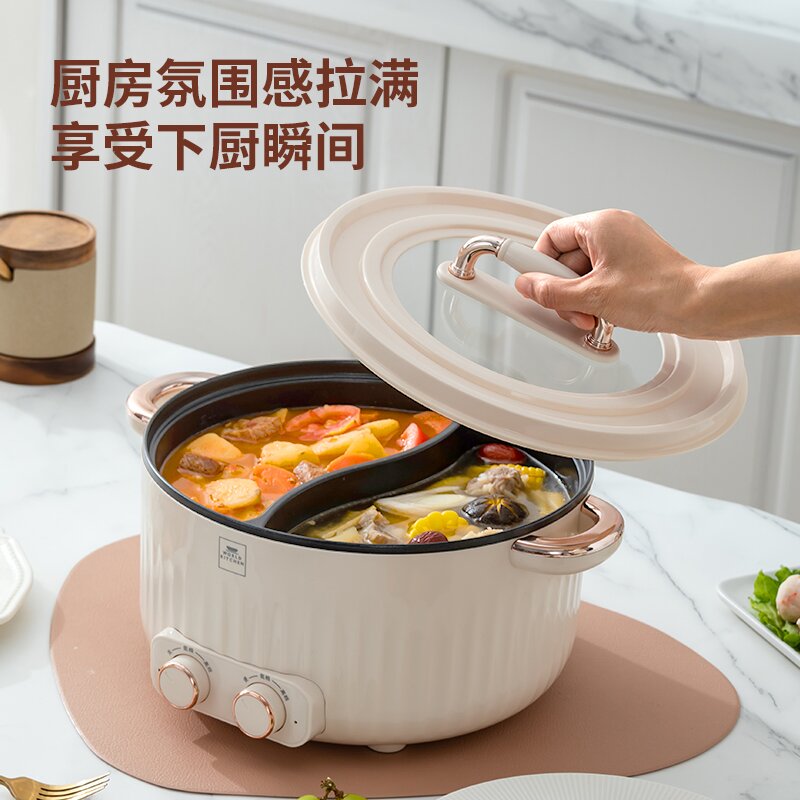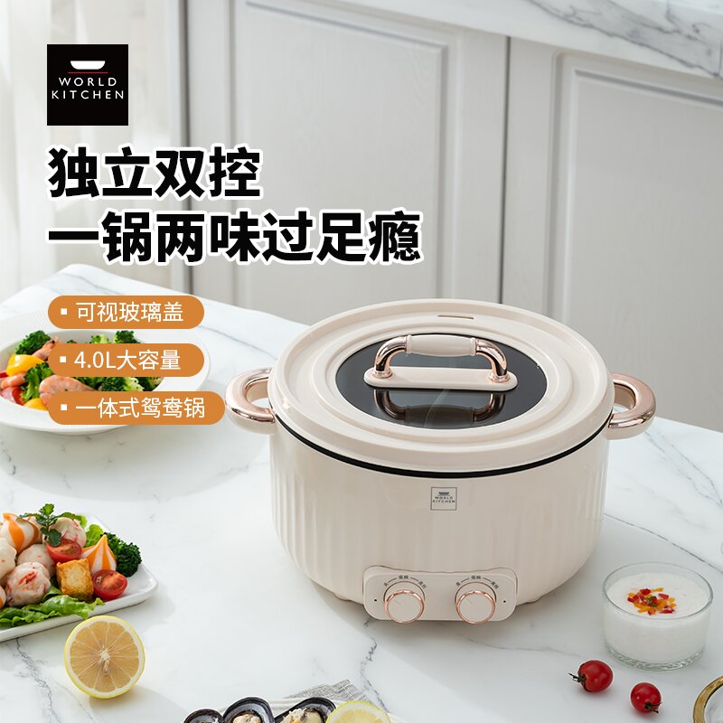康寧/WORLD KITCHEN多功能鴛鴦鍋WK-GYY4006/KZ一鍋兩味花樣功能 2000W在功率快速加熱;雙重溫控保護防干燒 獨立雙開關分區工作互不干擾;