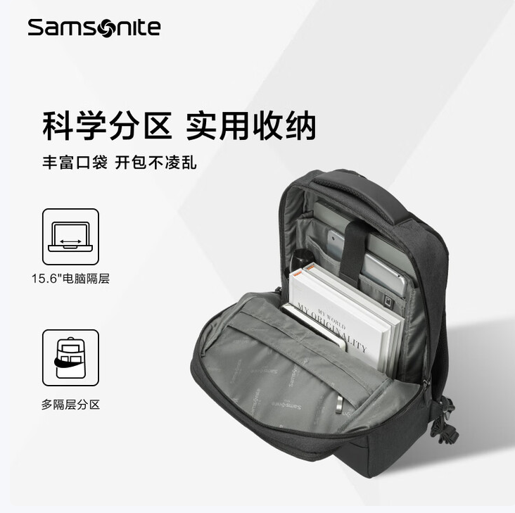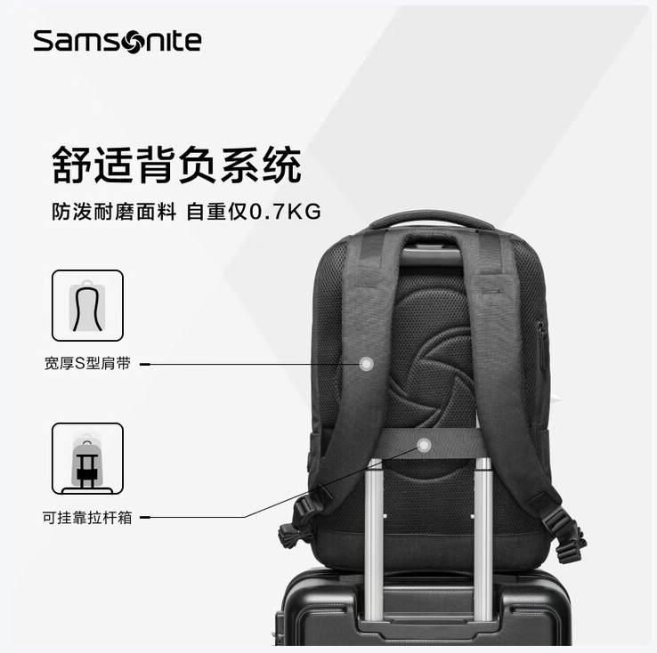 新秀麗包 高密度織物面料與超纖革面料拼接,防潑耐磨,在呈現高質感的同時更加抗撕,延長使用期限。 主袋:大開口生活倉、平板電腦插袋,文組插袋 前幅拉鏈袋:方便存取物件 兩側敞口袋,可放置雨傘/水杯。 側邊充電線…